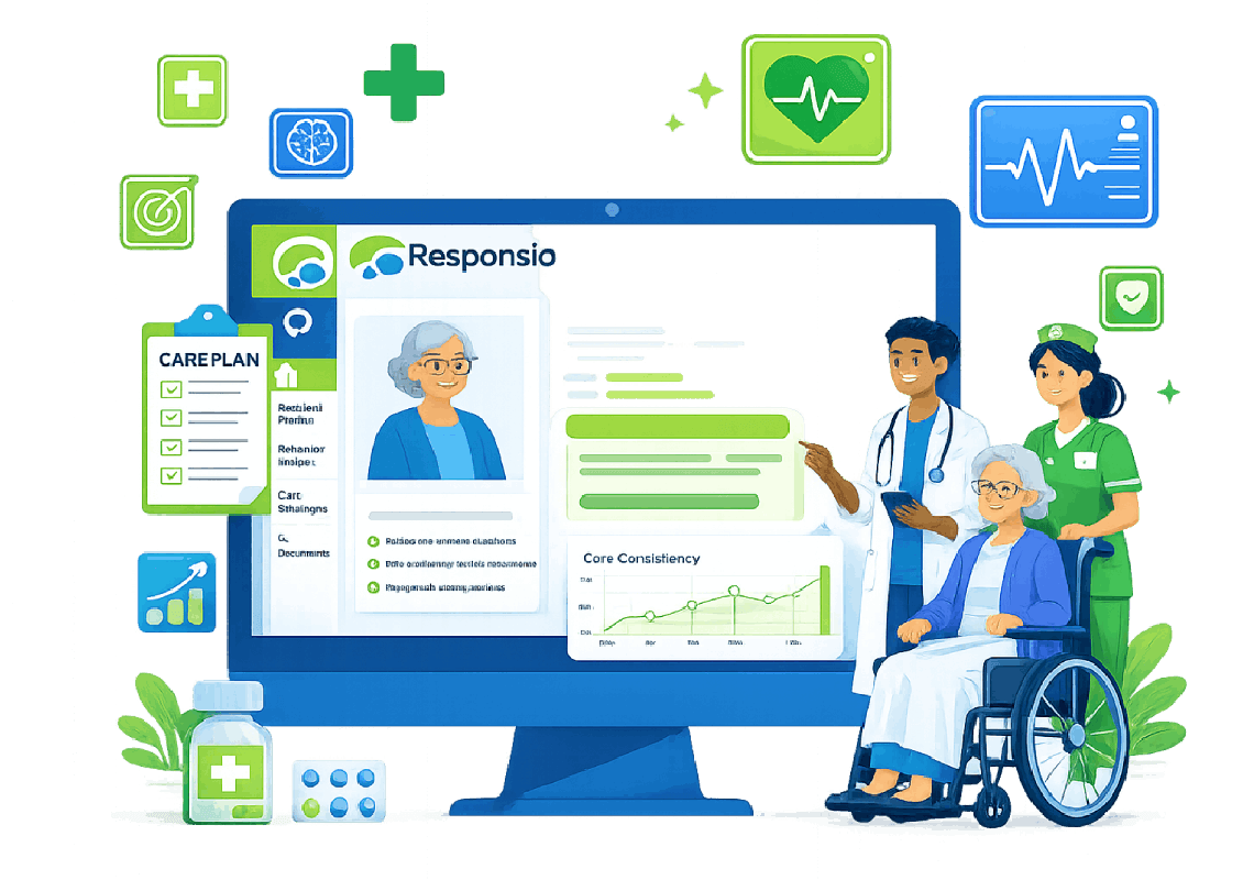 Responsio is a AI‑powered dementia‑care assistant built to help teams understand behaviours, support residents, and deliver consistent, person‑centred care. By combining clinical best practices with advanced AI, Responsio provides instant, reliable guidance at the point of care.